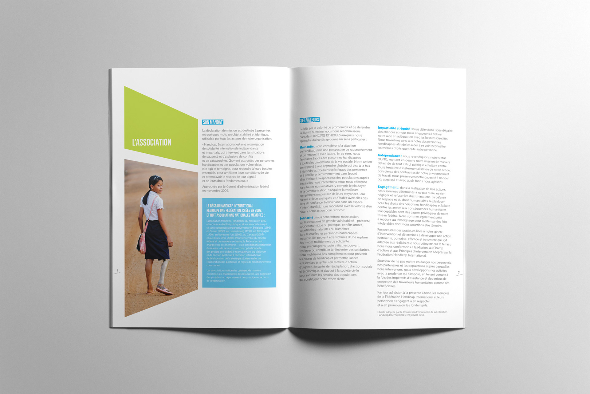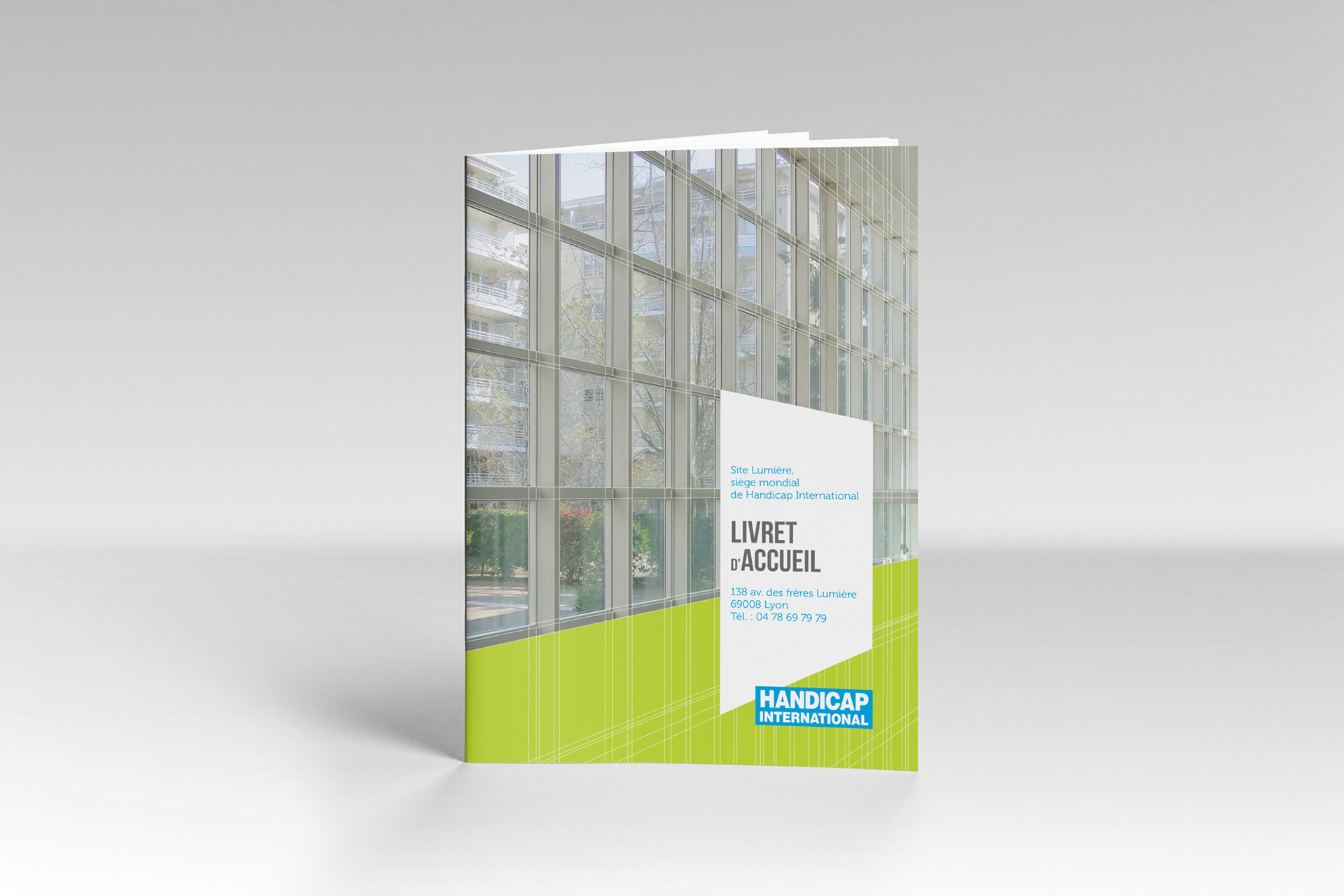 Conception graphique du livret d’accueil des locaux de Handicap International à Lyon (2014).